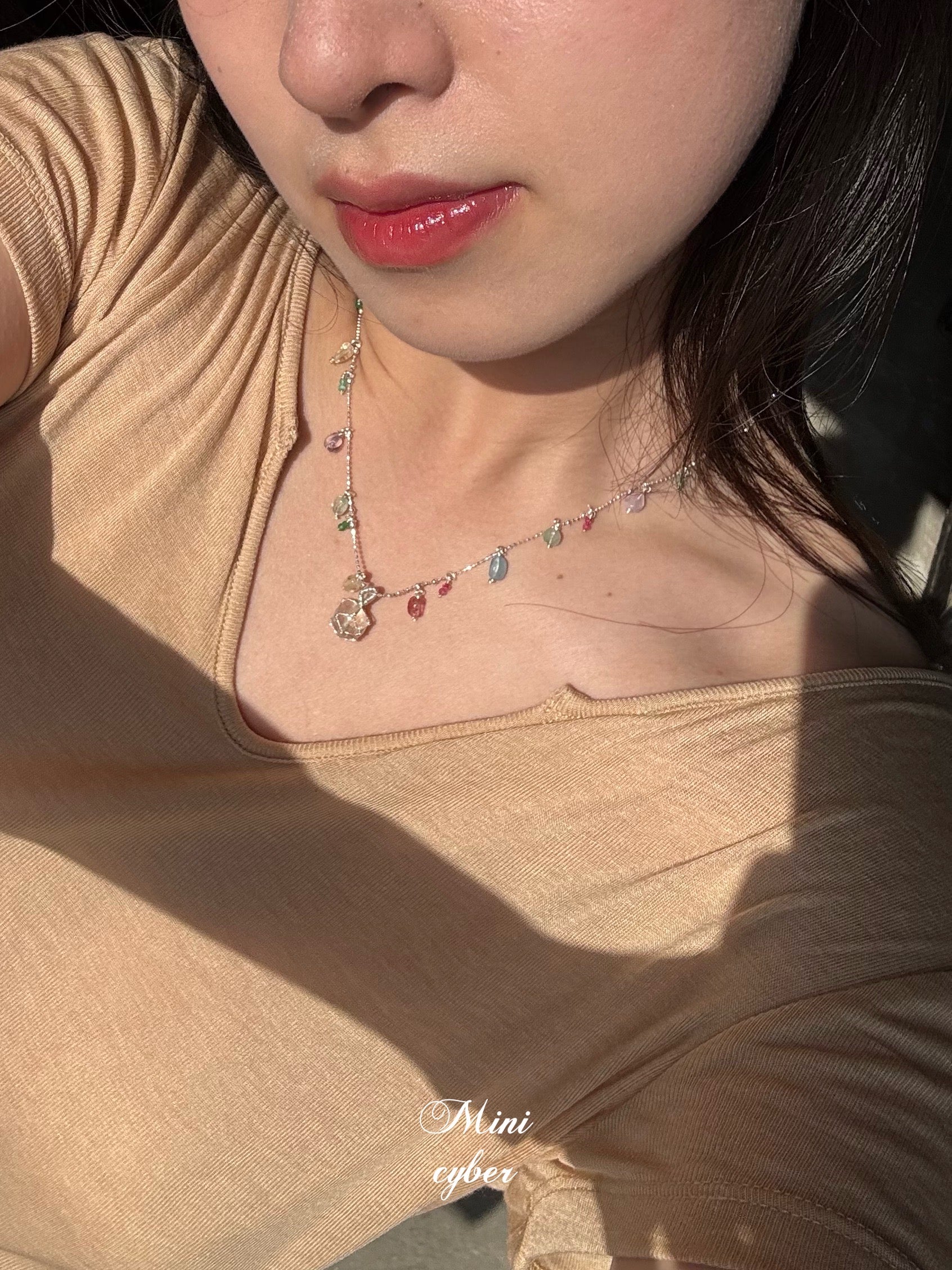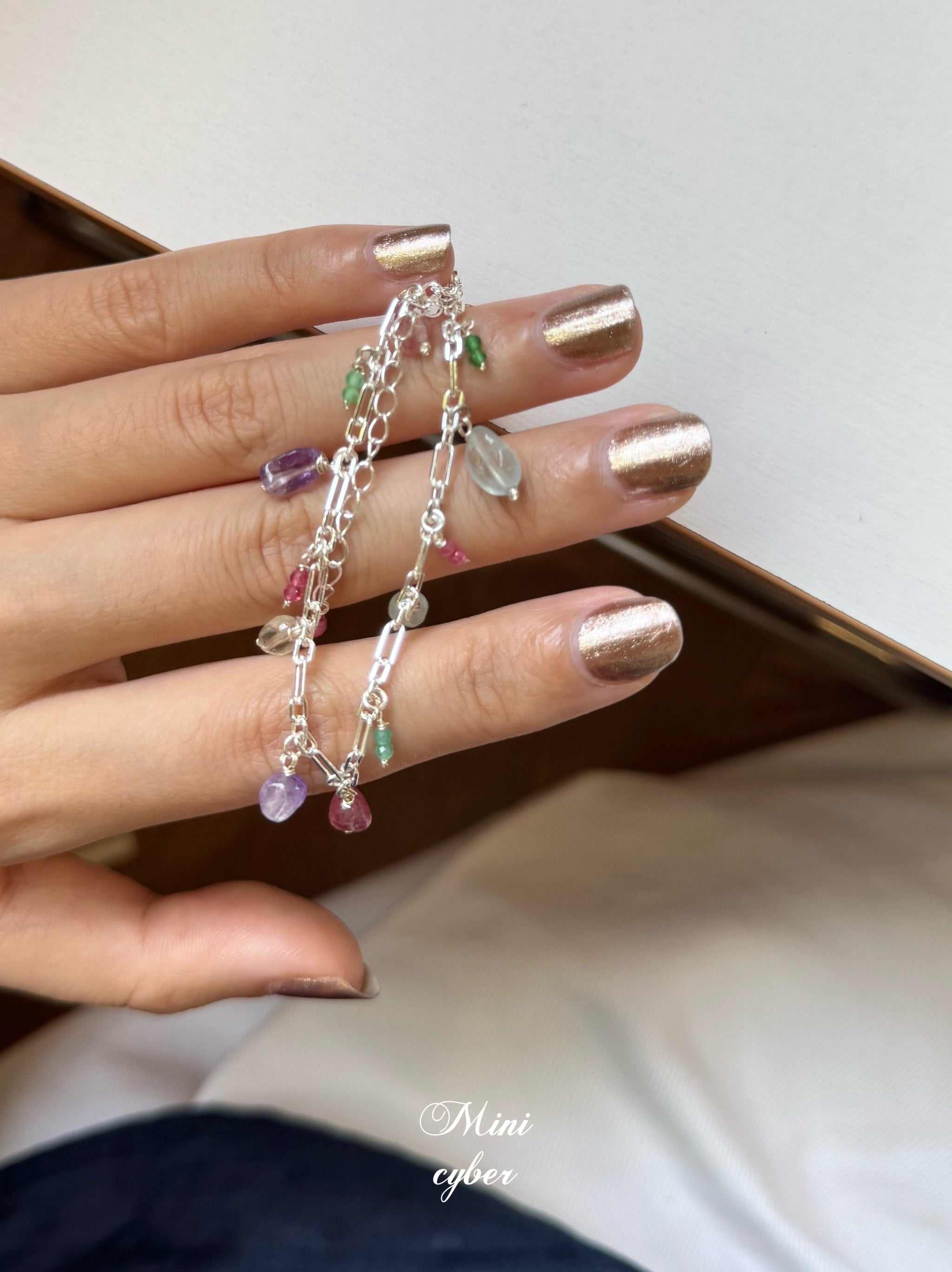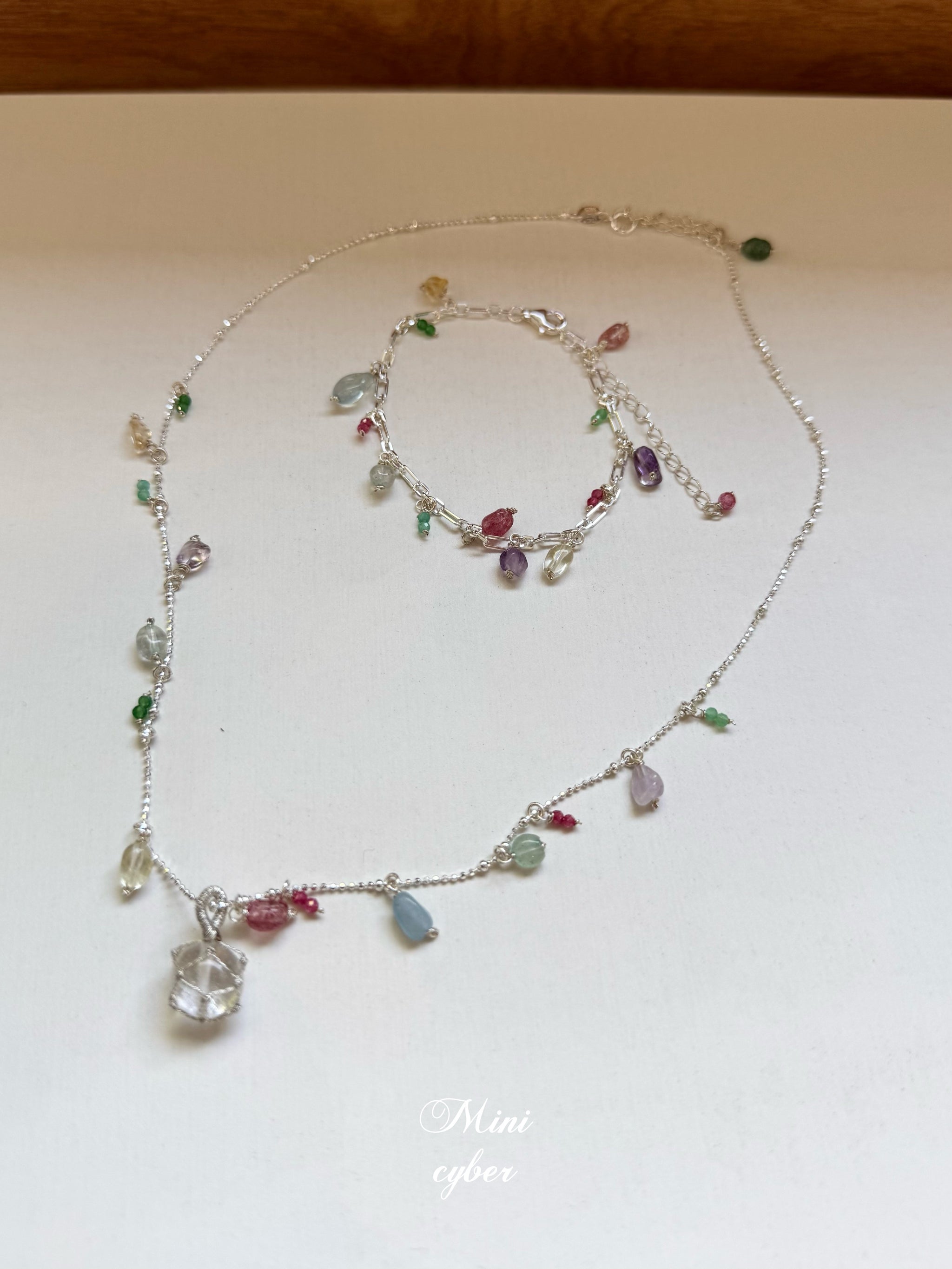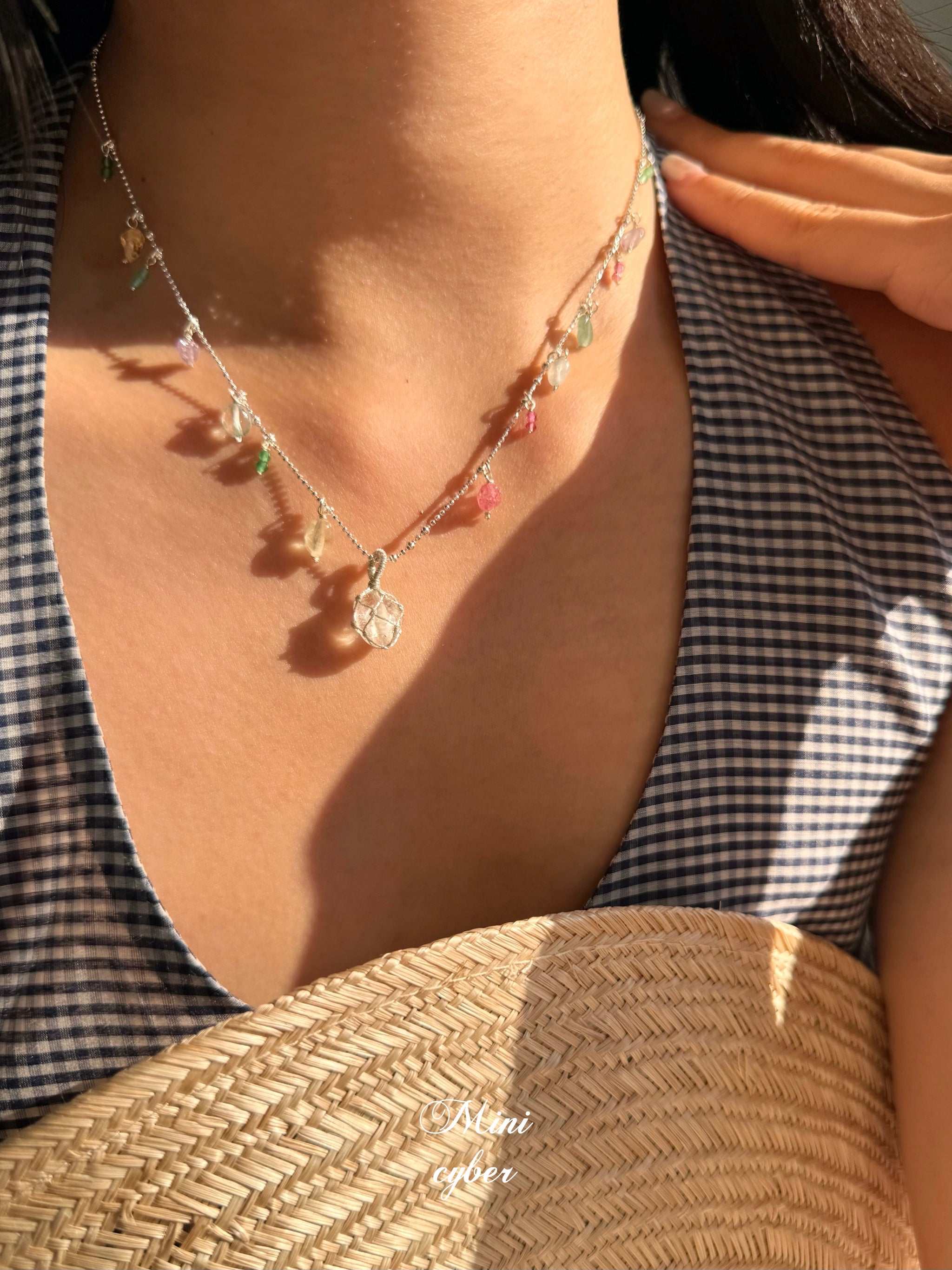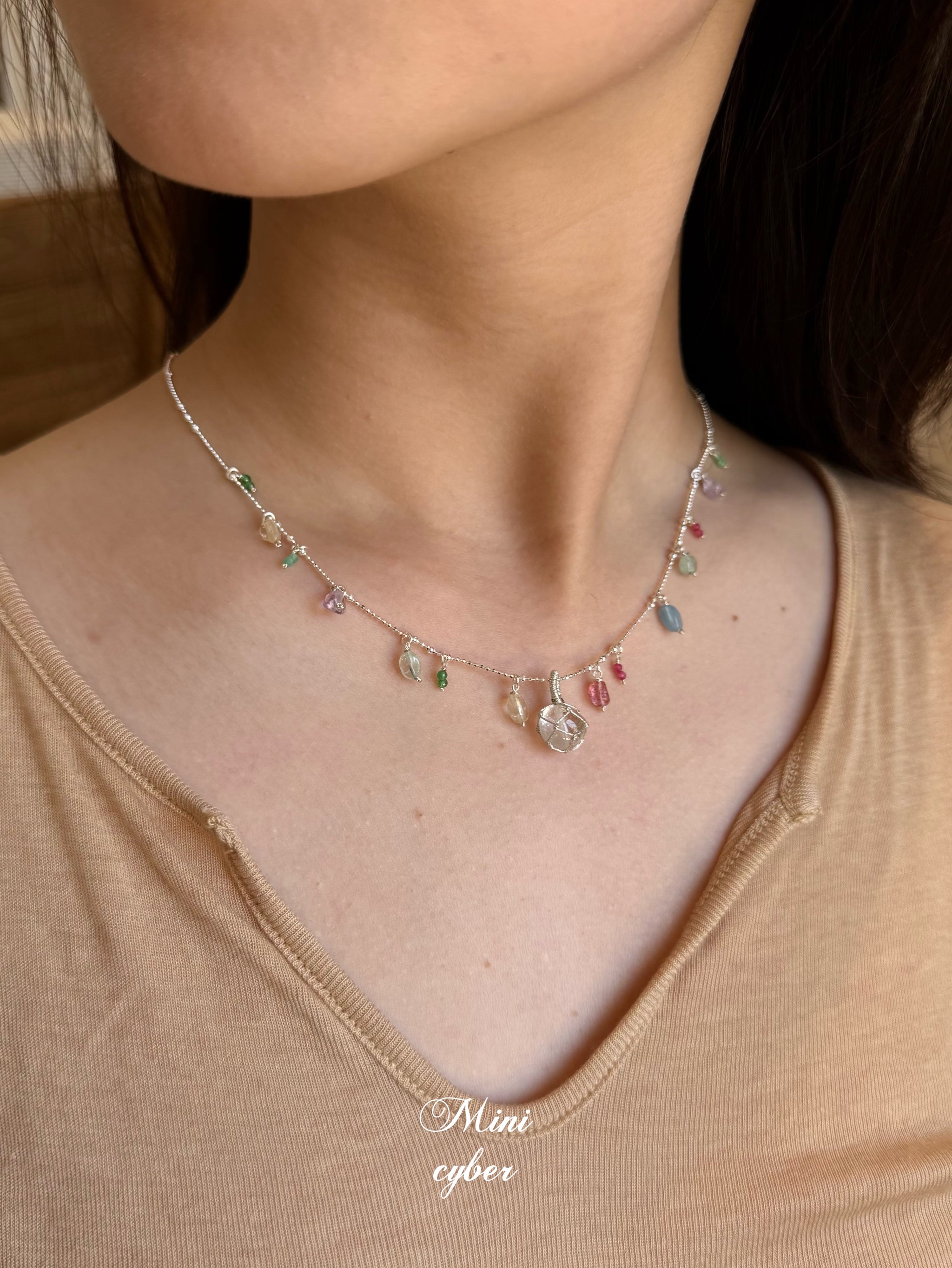 Materials: High quality 925 sterling silver Stones: Natural Strawberry Quartz, Natural Clear Quartz, Natural Smoky Quartz, Natural Green Chalcedony: Due to the nature of natural...