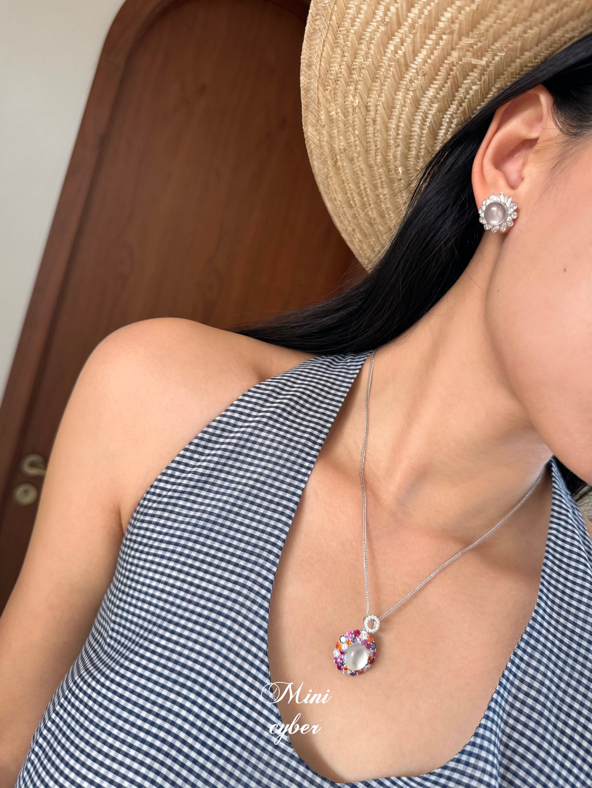 Materials: High quality 925 sterling silver Stones: Natural Jadeite, Natural Moonstone: Due to the nature of natural gems, not every piece will be exactly the...