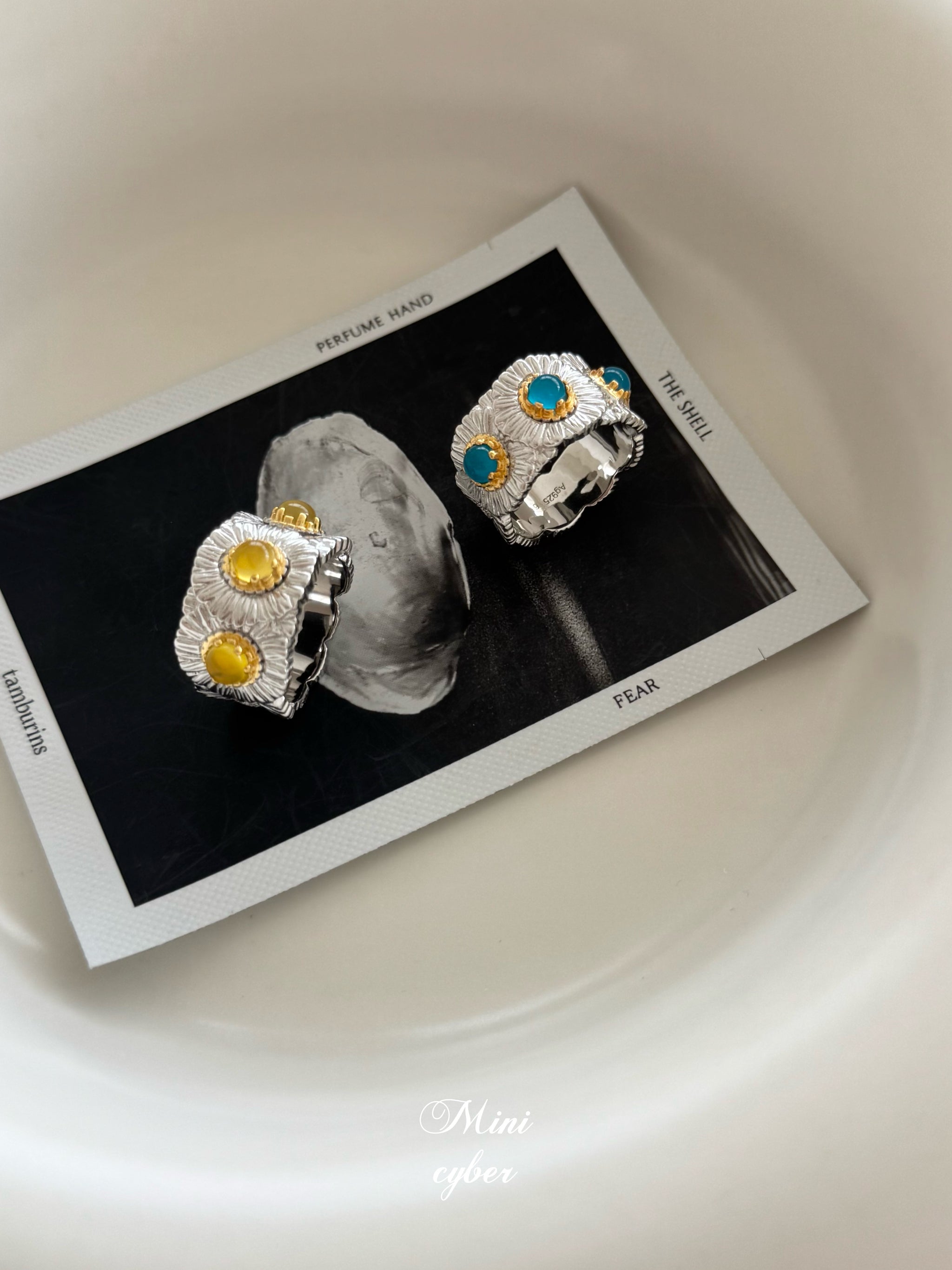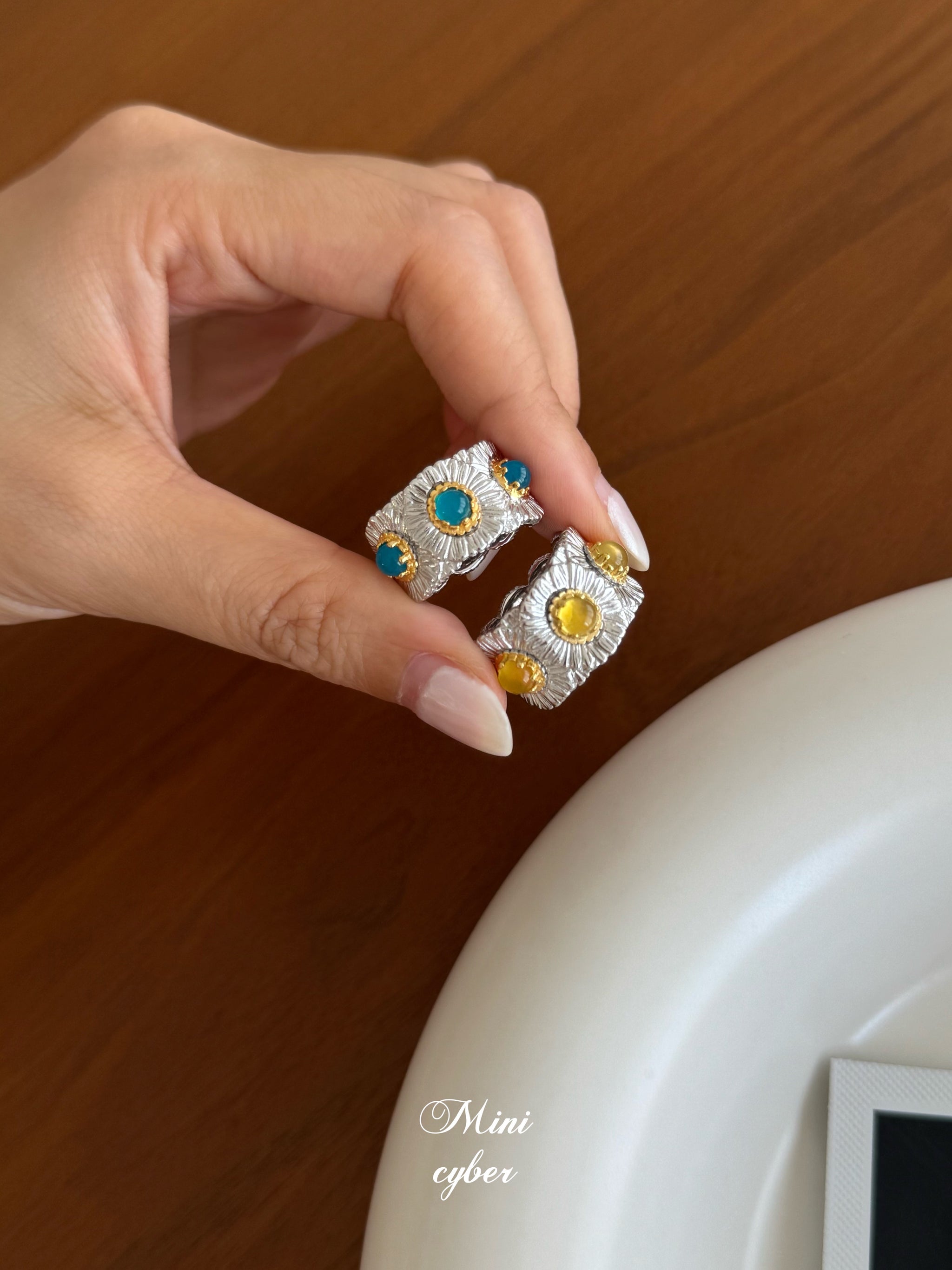 Materials : High quality solid 925 sterling silver Finish: White gold vermeil Stones: Natural Blue & Yellow Agate: Due to the nature of natural gems, not...