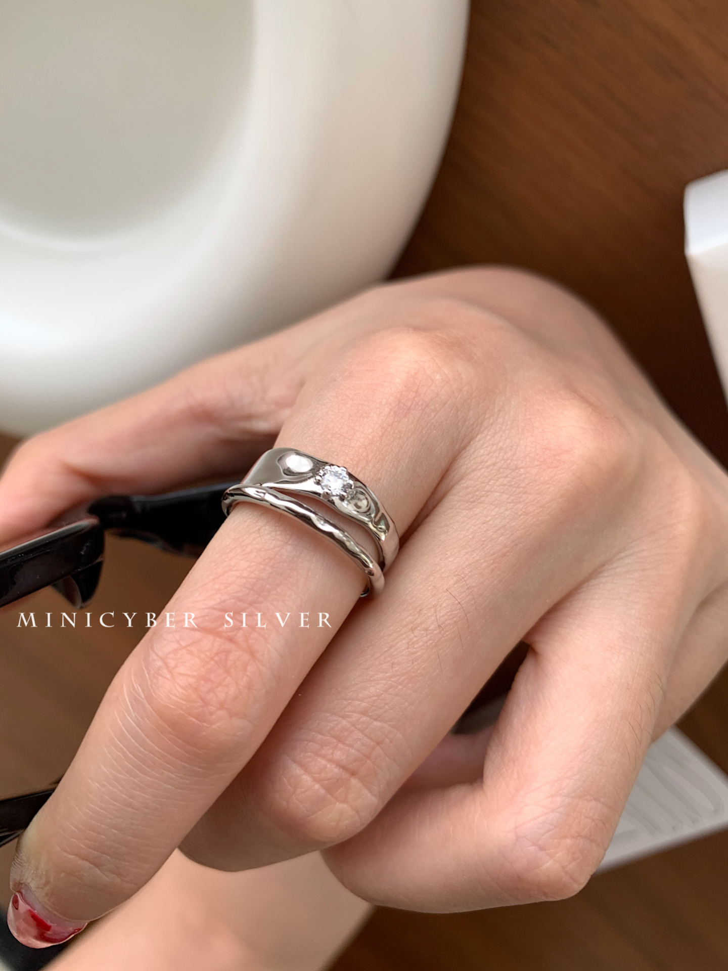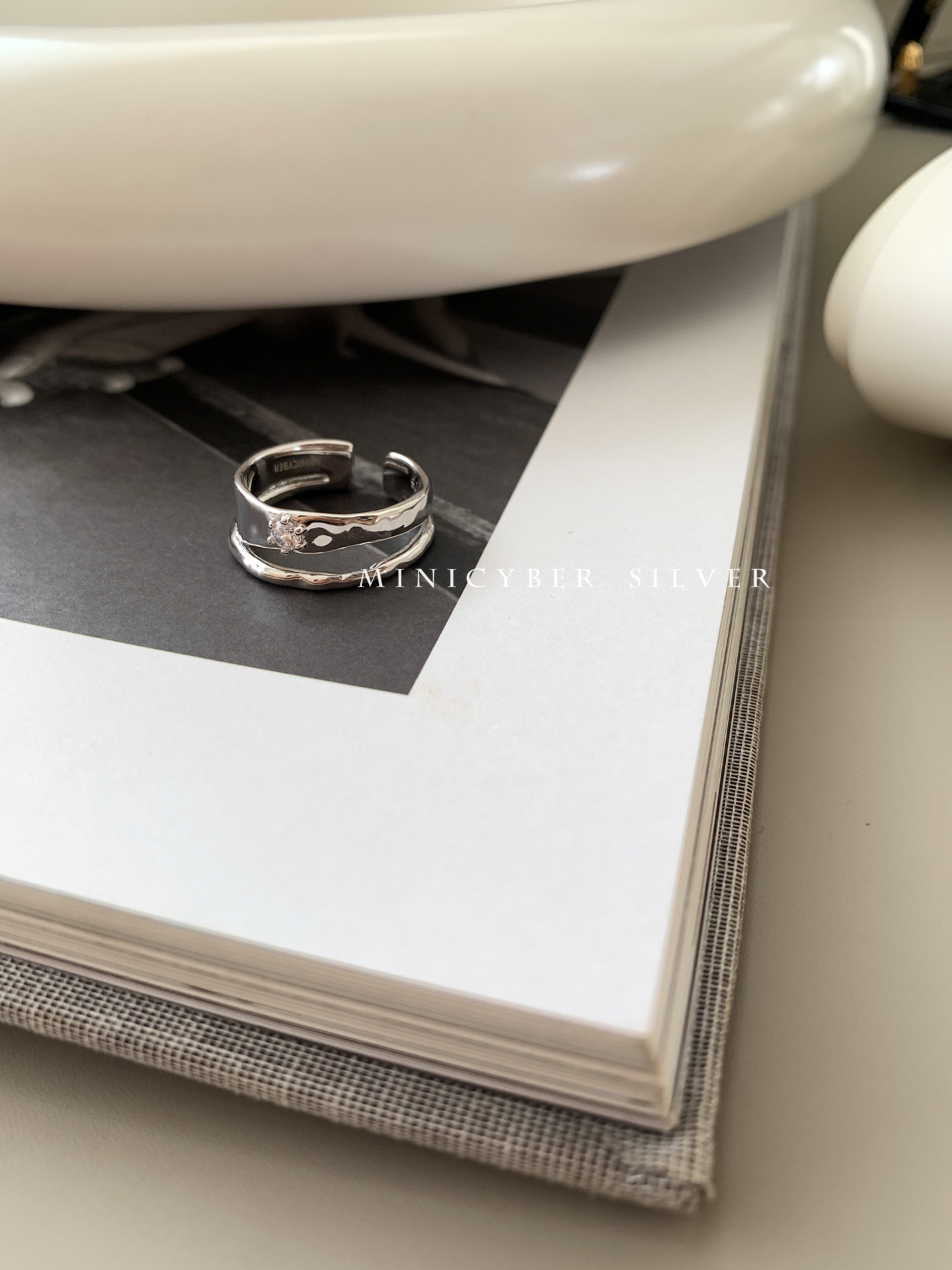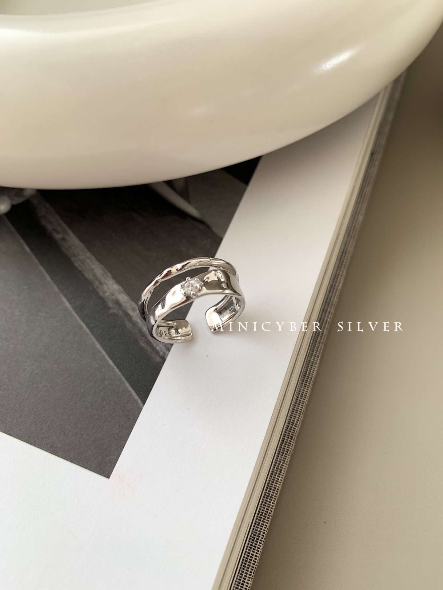 Materials: White gold vermeil on solid 925 sterling silver Size: Open-Ended Adjustable Designer's inspiration: "Smooth, reflective yet matte,artistic and abstract,twisting the view but also...
