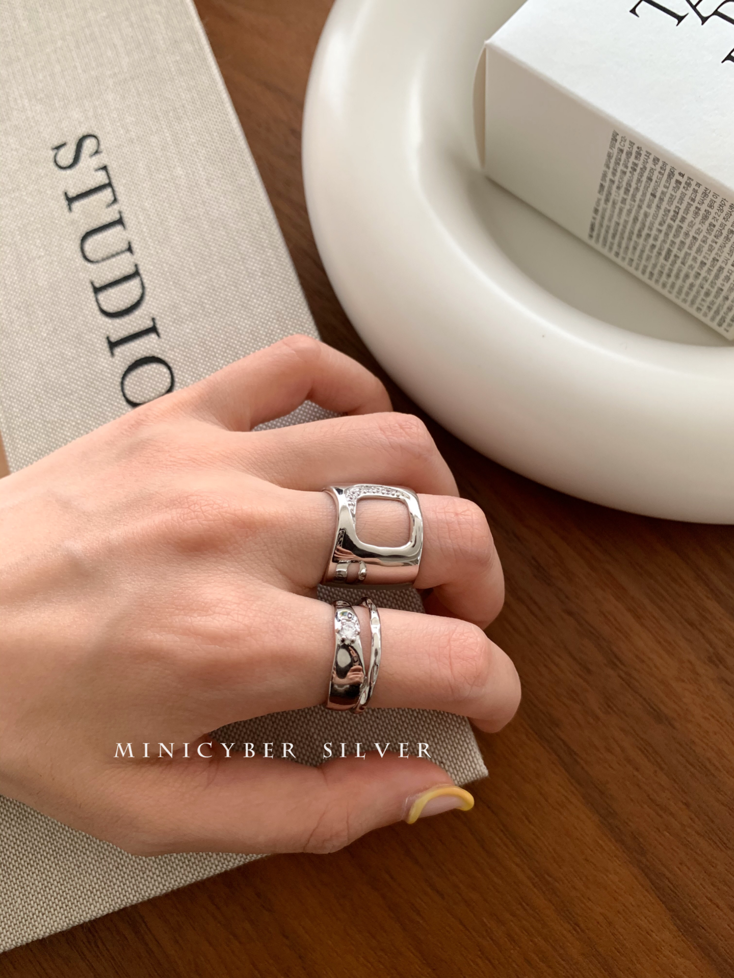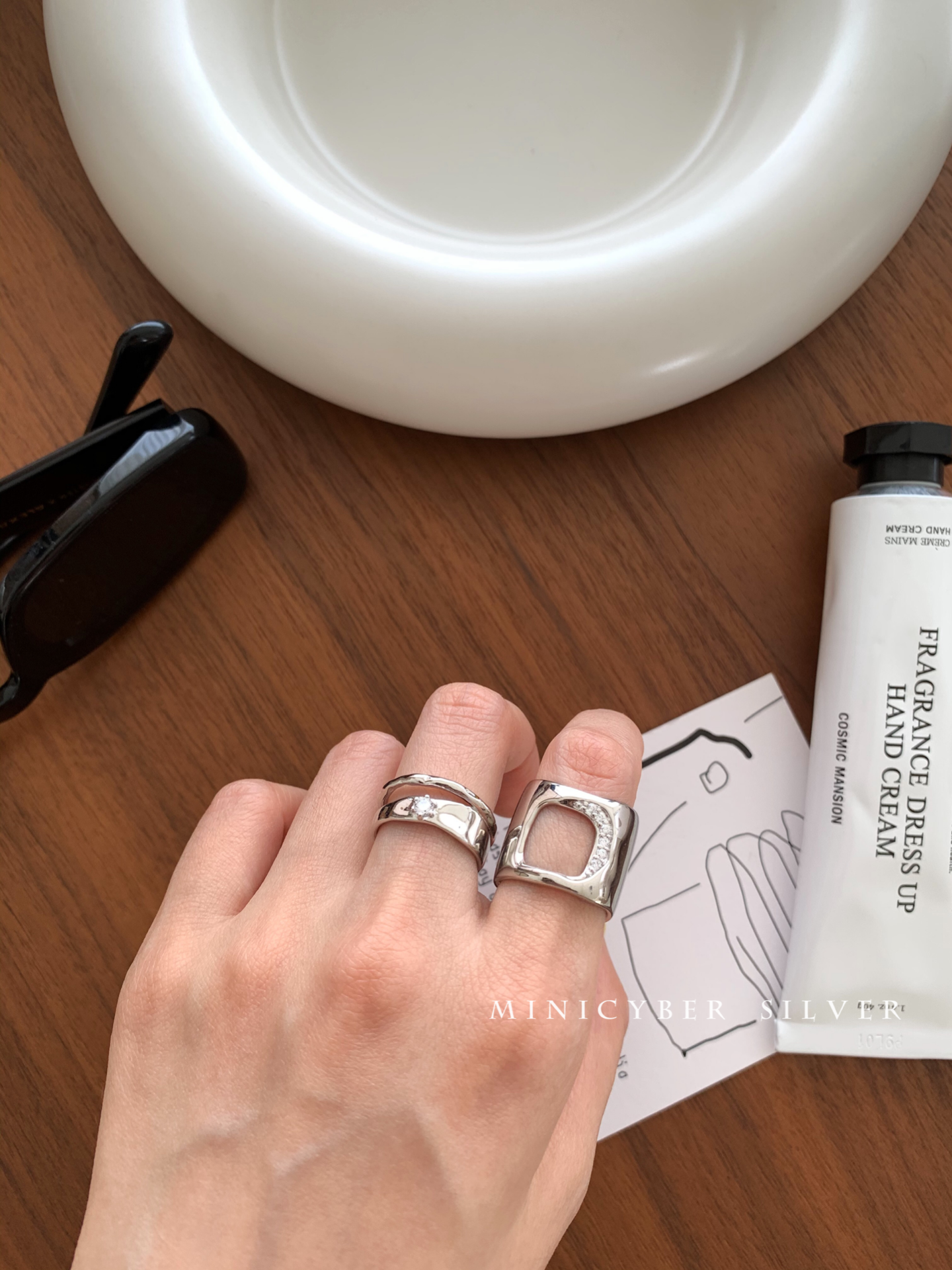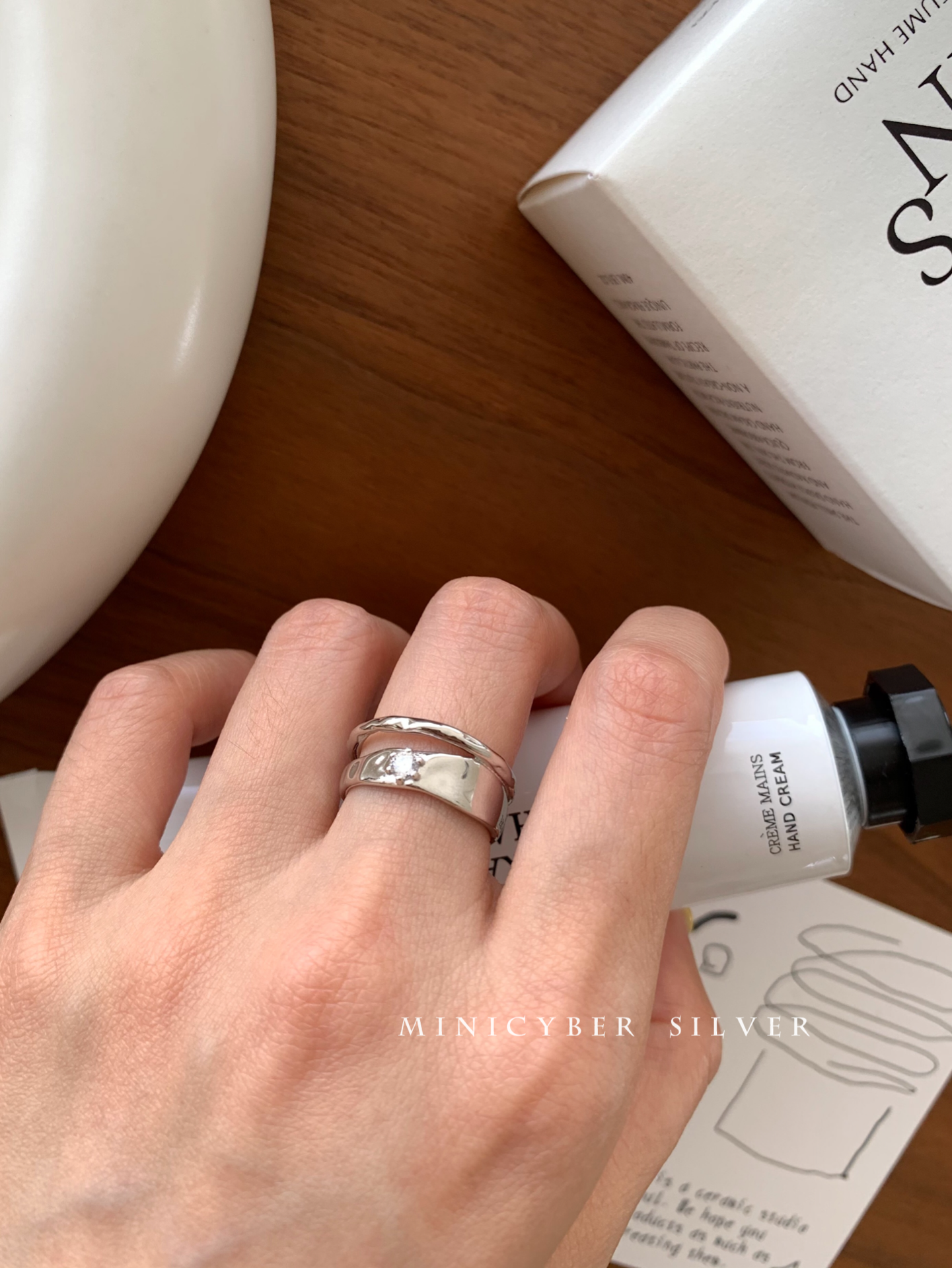 Materials: White gold vermeil on solid 925 sterling silver Size: Open-Ended Adjustable Designer's inspiration: "Smooth, reflective yet matte,artistic and abstract,twisting the view but also...
