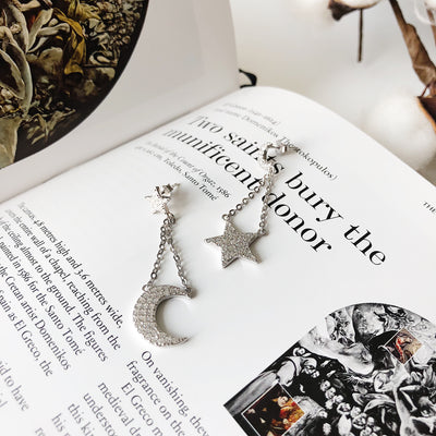 Category: 925 Sterling Silver, Asymmetric Design, Cubic Zirconia, Moon, Stars, White gold vermeil