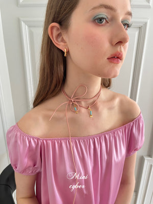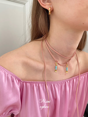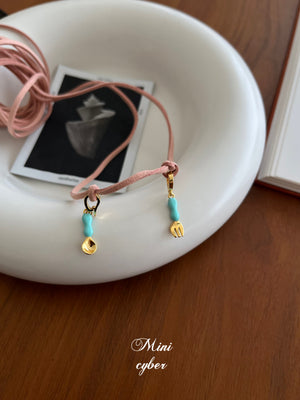 Embrace the playfulness of spring and summer with our Cute Treats Moments Necklace. The delicate suede cord chain and charming rubber pink color exude youthful vibes, perfect for expressing your style. With a versatile length, you can wear it as a choker or tie a bow. The whimsical knife and fork add a touch of fun.