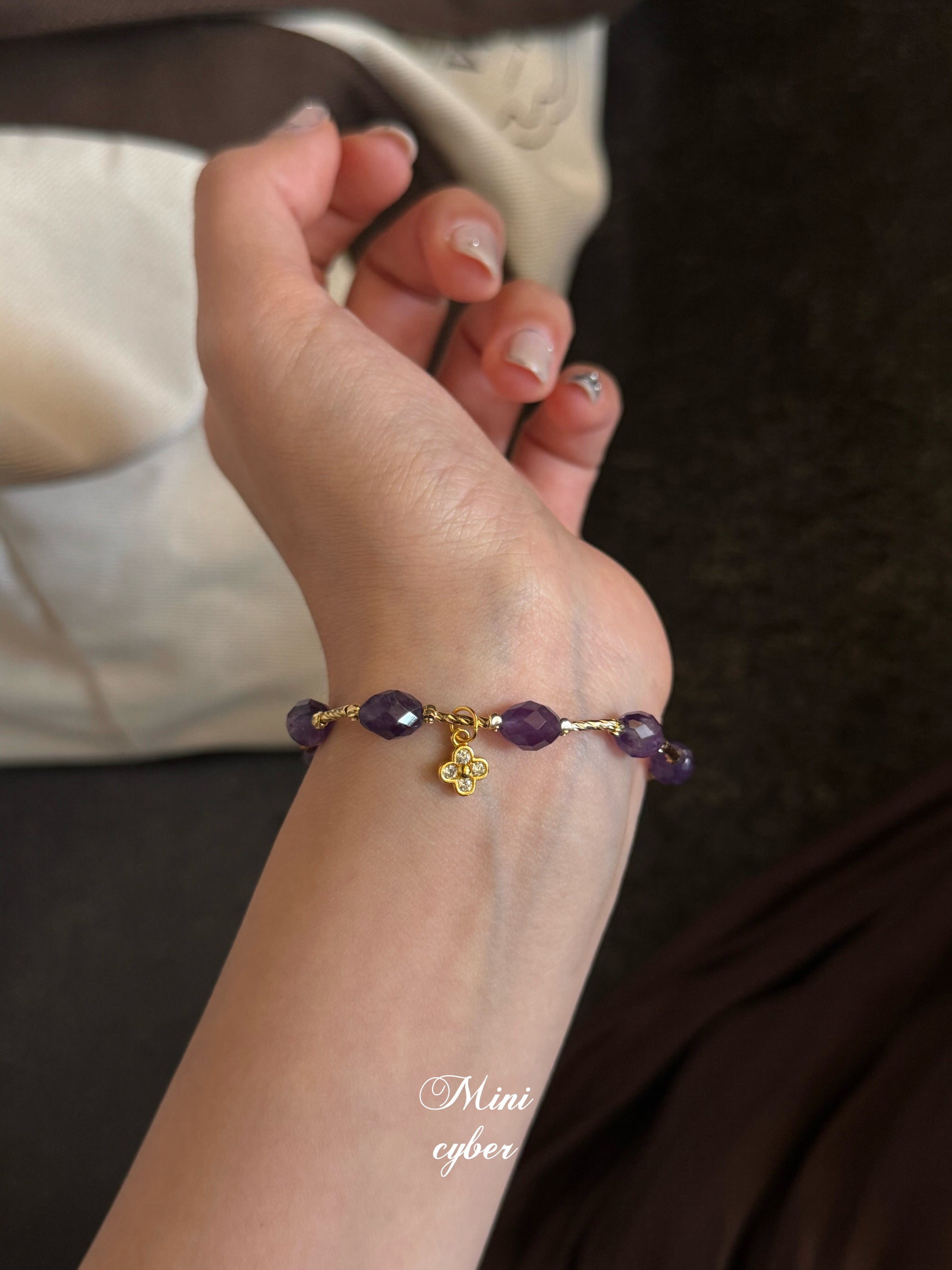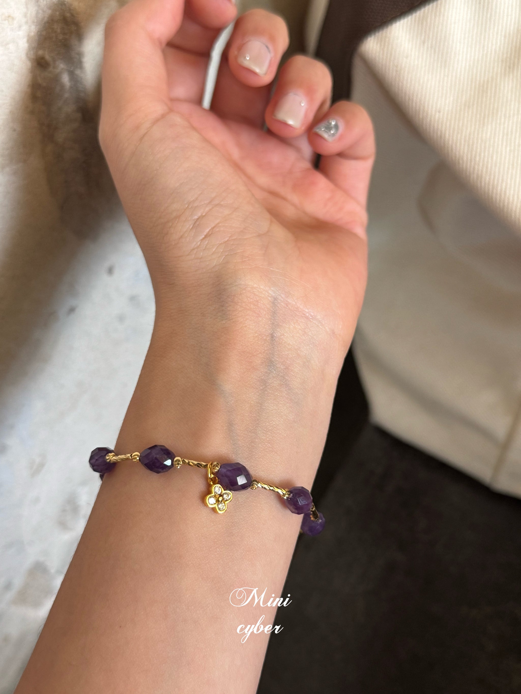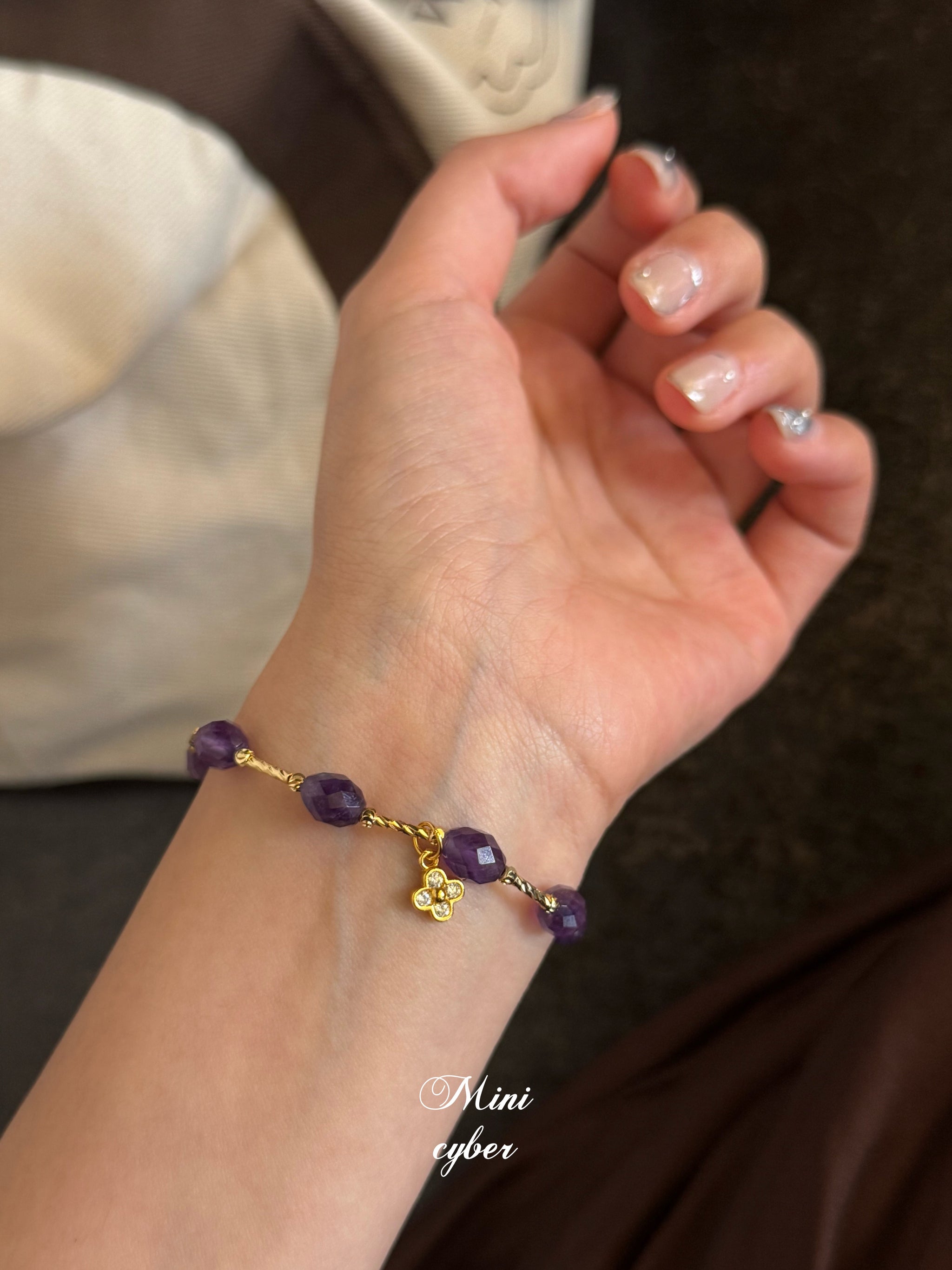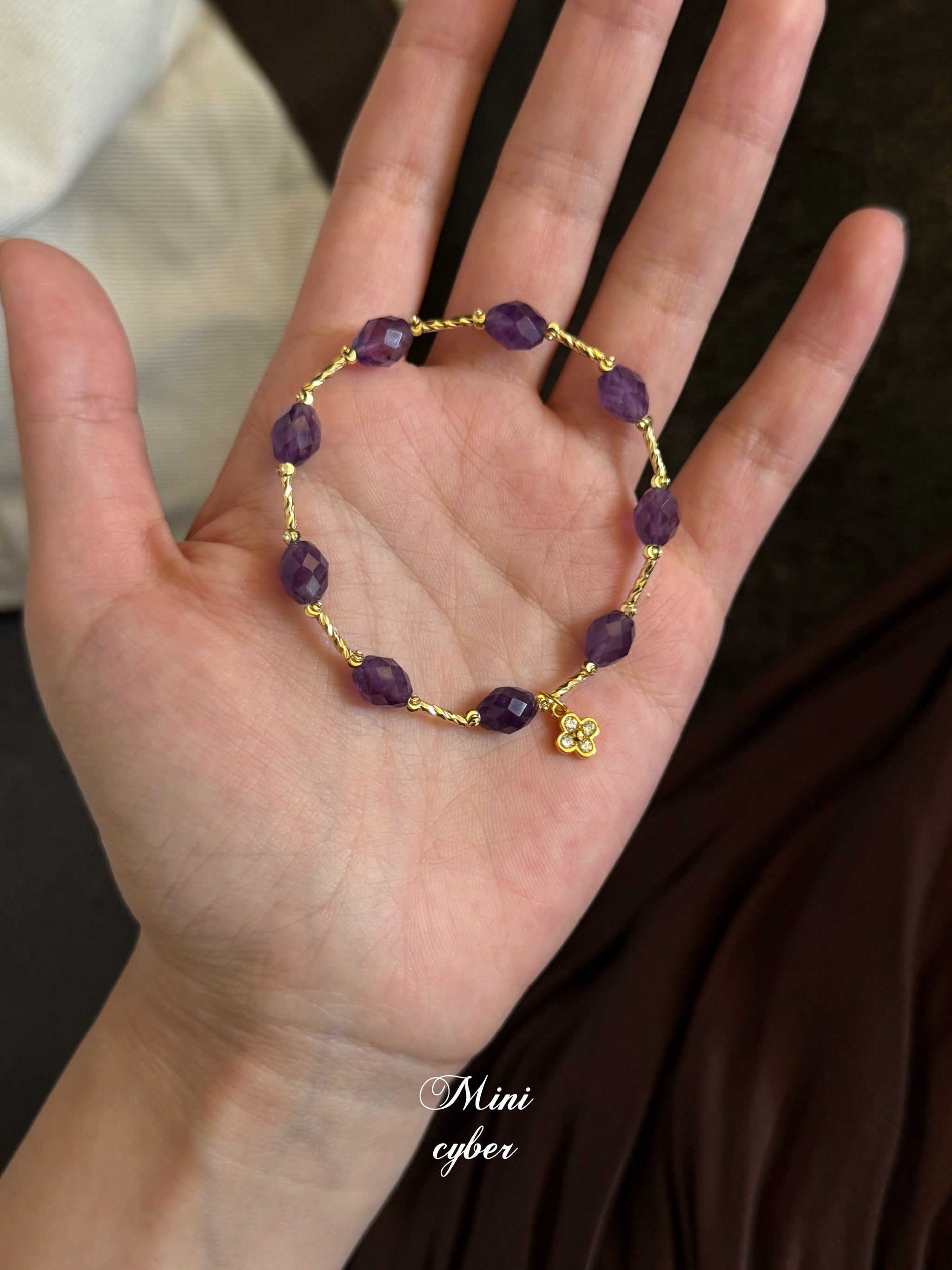 Drape yourself in enchantment with the Floral Amethyst Infused with Fig Aroma Bracelet. Each natural amethyst, shimmering with a delicate purple glow, is interwoven with copper accents for a vintage touch. The sophisticated fig-inspired design adds a subtle, romantic aura to every movement. With a gentle jingle, this bracelet is a captivating and stylish expression of grace and fantasy.