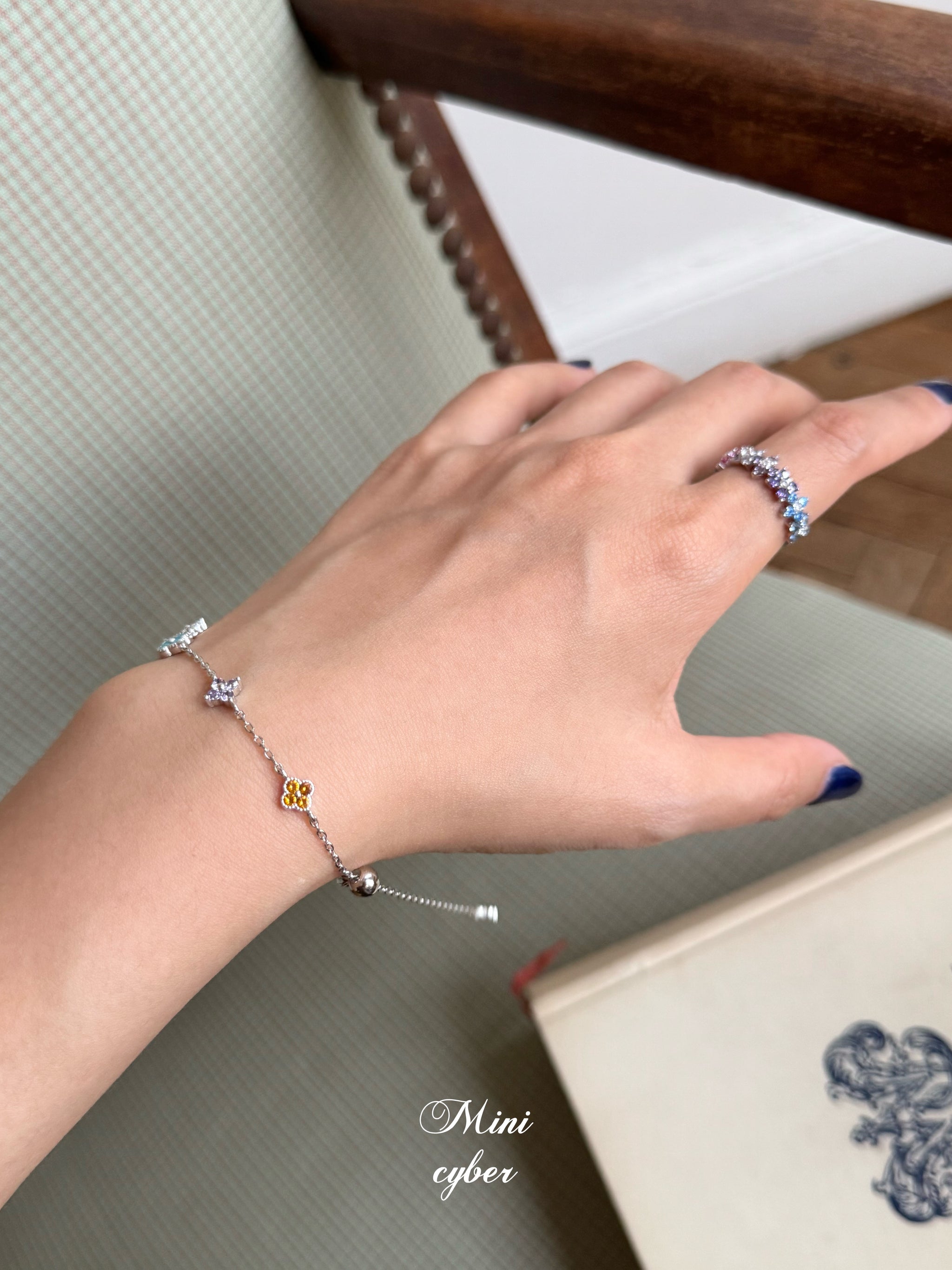 Materials : High quality solid 925 sterling silver Finish: White gold vermeil Stones: 5A Cubic zirconia Length: 20cm Adjustable Designer‘s inspiration: The Rainbow Clover Zircon Bracelet...